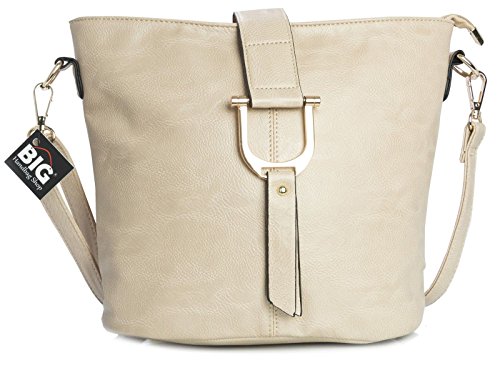 If you want to buy Big Handbag Shop Womens Faux Leather Bucket Style Cross Body Shoulder Bag (Beige) safely and comfortably please click on the button below: