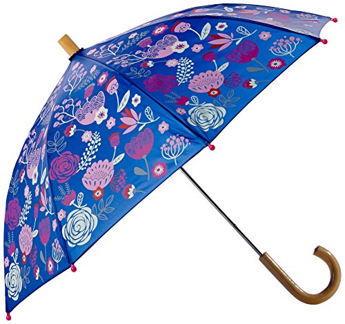 Awesome umbrella by Hatley. A cute blue umbrella with a beautiful flower print all over. It is a child-safe design with a curved handle and plastic coverings on the spokes. It measures 23'' / 58cm long and 28'' / 71cm across when open. DapperBaby has a wide range of gorgeous Hatley products.