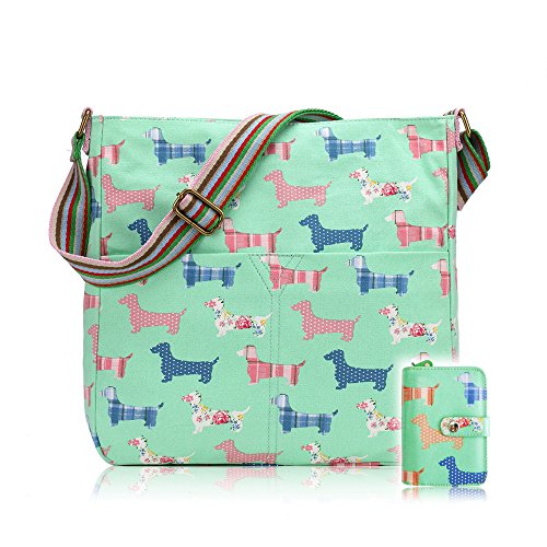 Best Seller! Ladies Girls Kids Dachshund Sausage Dog Print Crossbody Bag (Green) Review